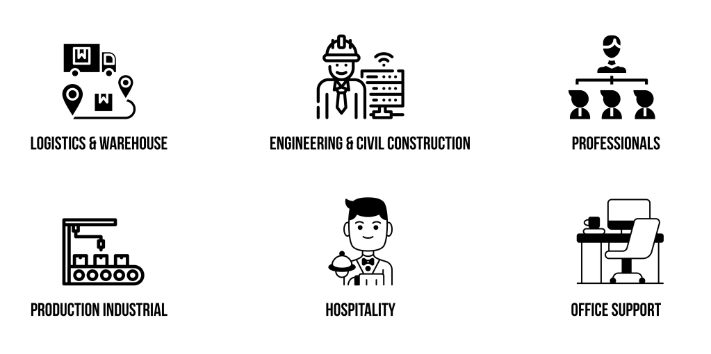 Our expertise spans a diverse range of industries, including Logistics & Warehouse, Engineering & Civil Construction, Production Industrial Recruitment, Office Support, Hospitality, Professional, and more. We are dedicated to providing tailored solutions that drive your business towards success.